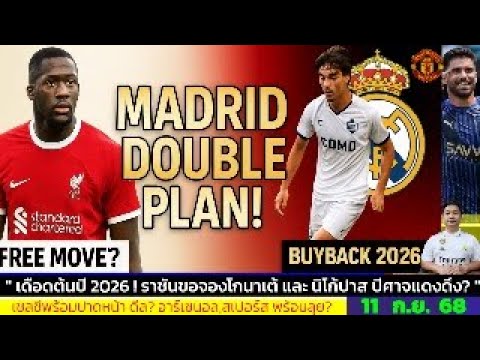 ข่าวการย้ายทีม ล่าสุด 11 ก.ย. 68 เวลา 12.20 น. -🔥“แผนใหญ่ราชัน! มาดริดเล็ง โกนาเต้–นิโก้ ปาซ 2026”
