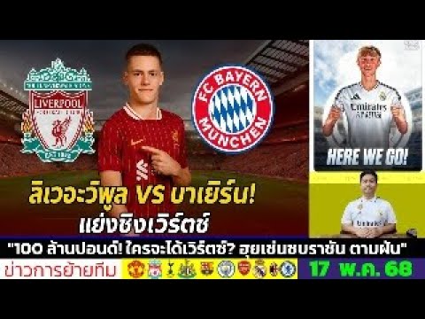 ข่าวการย้ายทีม ล่าสุด 17 พ.ค. 68 เวลา 07.00 น. – 🔥 “เวิร์ตซ์เลือกแล้ว!? บาเยิร์นสะเทือน–หงส์รุกหนัก”