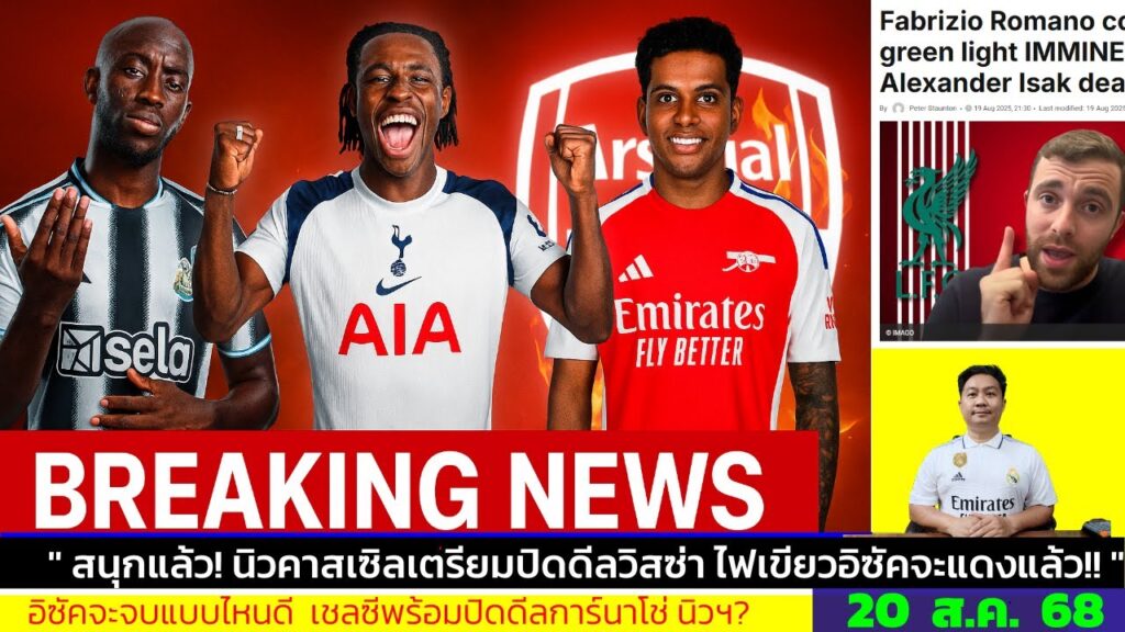 ข่าวการย้ายทีม ล่าสุด 20 ส.ค. 68 เวลา 13.10 น. – 🔥“ นิวคาสเซิลทุ่มใหญ่ วิสซ่า–แจ็คสันเสียบแทนอิซัค!”
