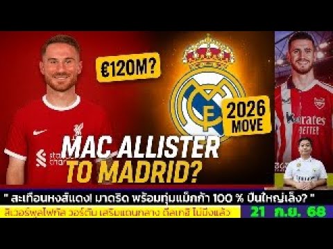 ข่าวการย้ายทีม ล่าสุด 21 ก.ย. 68 เวลา 22.30 น. -🔥⚪ มาดริดพร้อมทุ่ม €120M ล่าตัว Mac Allister ”