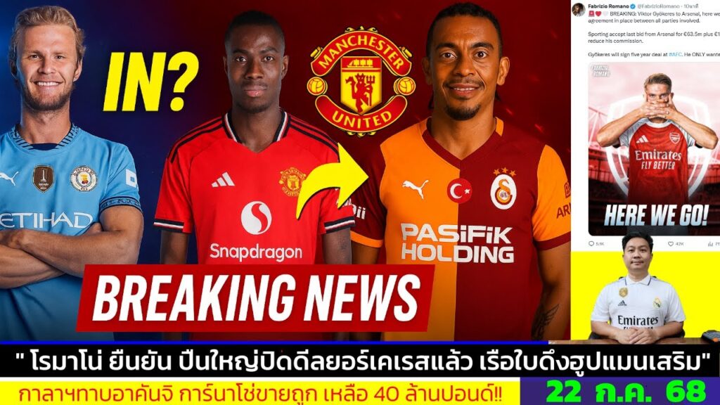 ข่าวการย้ายทีม ล่าสุด 22 ก.ค. 68 เวลา 21.25 น. – 🔥“HERE WE GO! ปืนใหญ่ปิดยอร์เกเรส ผีแดงขยับทันควัน”