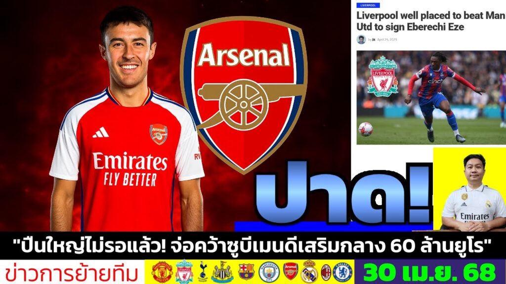 ข่าวการย้ายทีม ล่าสุด 30 เม.ย. 68 เวลา 13.20 น. – “มาดริดโดนแย่ง! ปืนบุกคว้าซูบีเมนดี ร่วมล่าแชมป์”