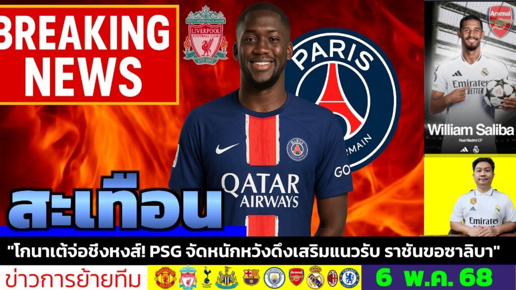 ข่าวการย้ายทีม ล่าสุด 6 พ.ค. 68 เวลา 09.14 น. – ” PSG ทุ่มล่าตัว ‘โกนาเต้’ ราชันยื่นซาลิบา สเปอร์ส?”