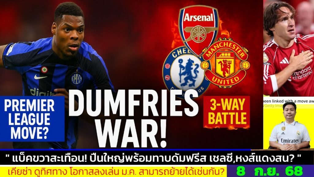ข่าวการย้ายทีม ล่าสุด 8 ก.ย. 68 เวลา 12.15 น. -🔥”3 ยักษ์พรีเมียร์ลีกเปิดศึก! ดัมฟรีส์ 30 ล้านยูโร”