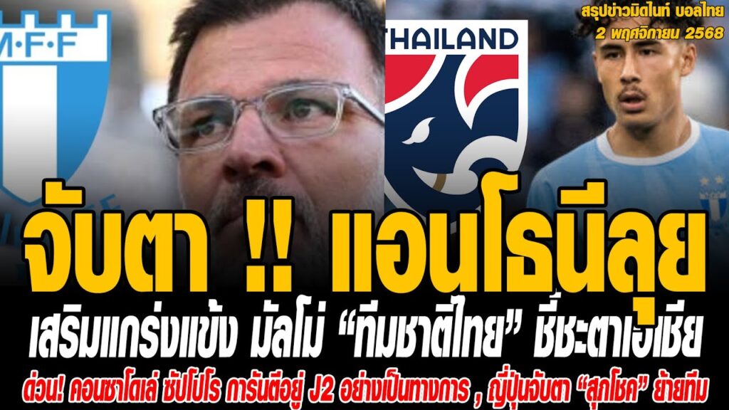 จับตา !! แอนโธนี ฮัดสัน เสริมแกร่งแข้ง มัลโม่ “ทีมชาติไทย” ชี้ชะตาเอเชีย ด่วน! คอนซาโดเล่ ซัปโปโร การันตีอยู่ J2 อย่างเป็นทางการ , ญี่ปุ่นจับตา …