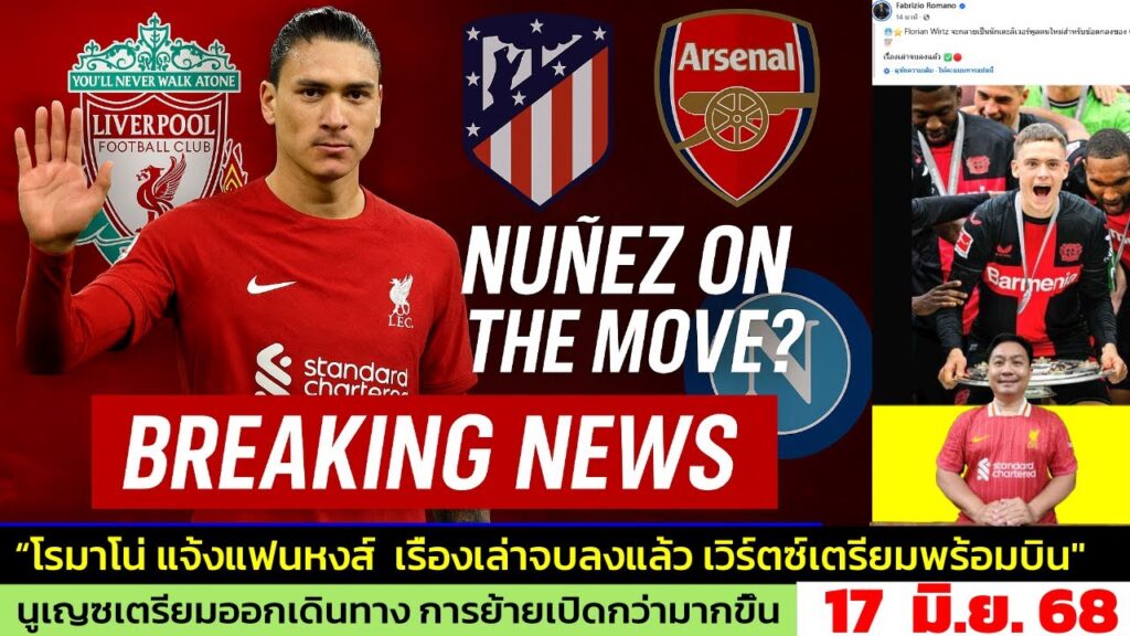 ข่าวลิเวอร์พูล ล่าสุด 17 มิ.ย. 68 เวลา 13.12 น. -🔥“โรมาโน่ยืนยัน! นูนเญซใกล้ย้าย เวิร์ตซ์เตรียมบิน”
