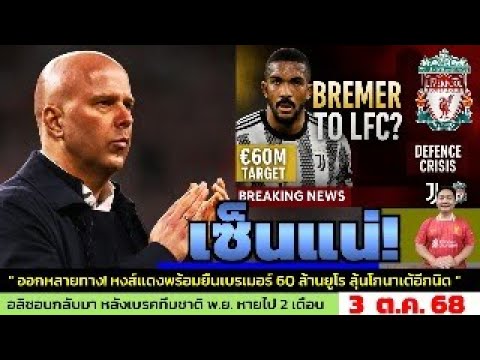 ข่าวลิเวอร์พูล ล่าสุด 3 ต.ค. 68 เวลา 06.45 น. – 🔥“ลิเวอร์พูลเล็งเบรเมอร์ €60M โกนาเต้เสี่ยงย้ายฟรี”