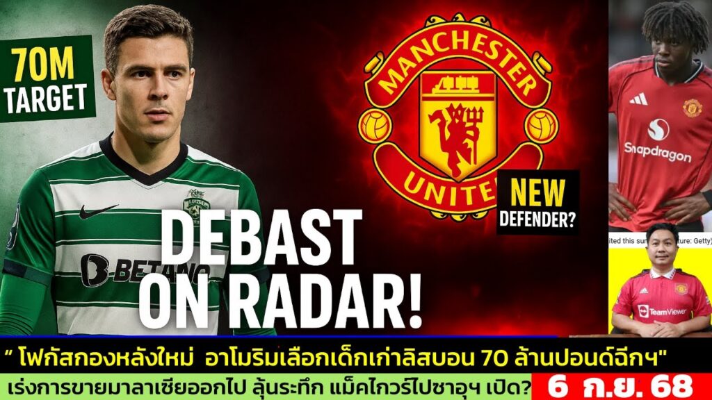 ข่าวแมนยู ล่าสุด 6 ก.ย. 68 เวลา 10.45 น. – 🔥“70M! แมนยูเล็งเดบาสต์ แนวรับอนาคตไกลสปอร์ติง ”