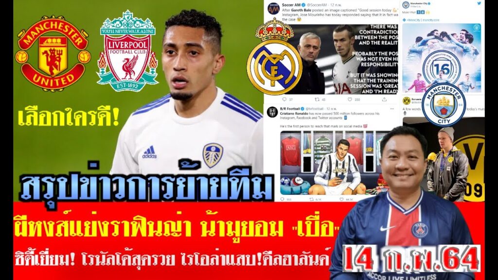 สรุปข่าวการย้ายทีม ล่าสุด 14 ก.พ. 64 เวลา 13.20 น. – ผีหงส์ล่าราฟินญ่า ซิตี้สุดยอด!น้ามูสุดเบื่อเบล ขอขอบคุณ ผู้ติดตามทุกท่าน ที่มาติดตามครับ …