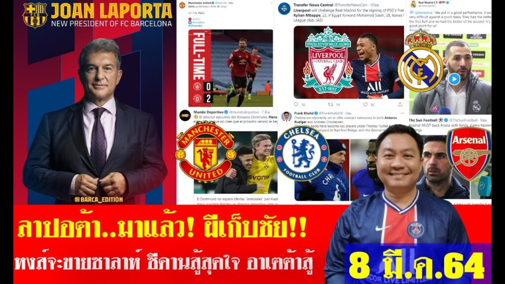 สรุปข่าวการย้ายทีม ล่าสุด 8 มี.ค.64 เวลา 10.40น. -บาร์ซ่าติดปีก! ผีเก็บชัย หงส์ขายซาลาห์ น้ามูมาเต็ม ขอขอบคุณ ผู้ติดตามทุกท่าน …