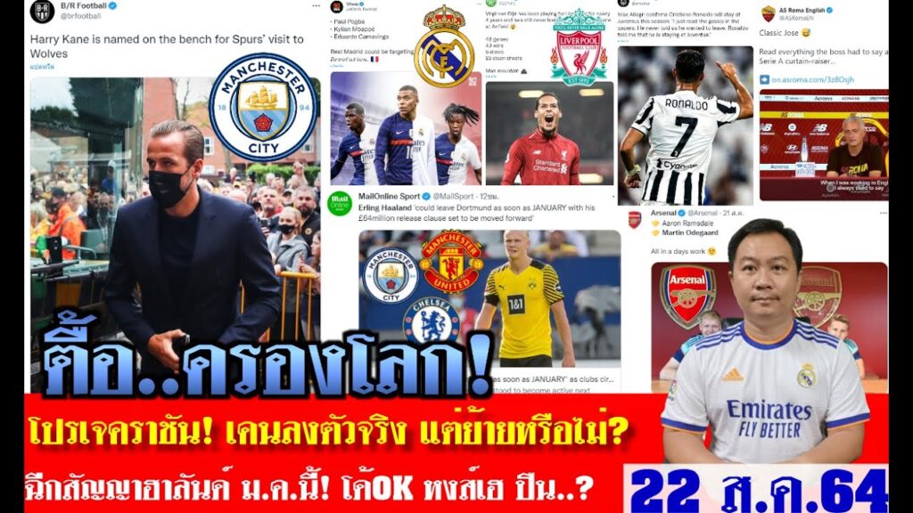 สรุปข่าวการย้ายทีม ล่าสุด 22 ส.ค. 64 เวลา 19.40 น. – เคนย้าย? ไฟลุก!เซ็นฮาลันด์ ม.ค.65 อัพเดทตลาด!