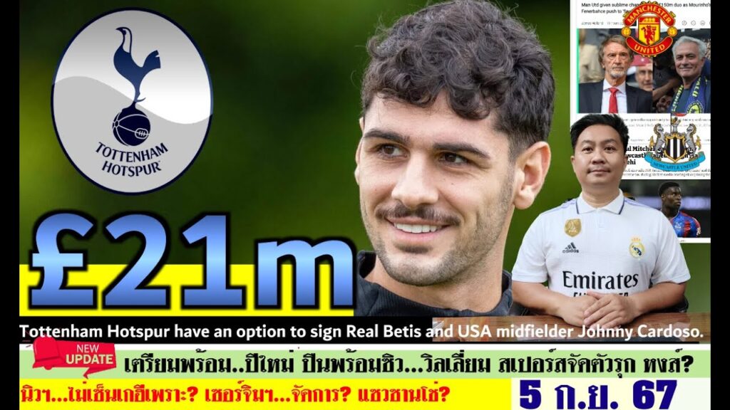 สรุปข่าวการย้ายทีม ล่าสุด 5 ก.ย. 67 เวลา 13.50 น. – สเปอร์สยื่นคาร์โดโซ่ สะเทือนเรือใบ(โรดี้) เกฮี?