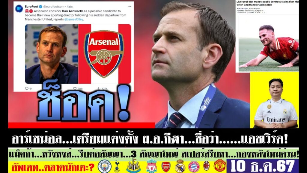 สรุปข่าวการย้ายทีม ล่าสุด 10 ธ.ค. 67 เวลา 23.50 น. – ผ.อ.กีฬาใหม่ อาร์เซน่อล ชื่อแดน แอชเวิร์ด หงส์?