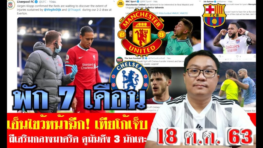 สรุปข่าวการย้ายทีม ล่าสุด 18 ต.ค.63 เวลา15.00 น. -พัก 7 เดือน!ฟานไดจ์ค เทียโก้เจ็บ ผีเสริมกลางมาดริด ขอขอบคุณ ผู้ติดตามทุกท่าน …