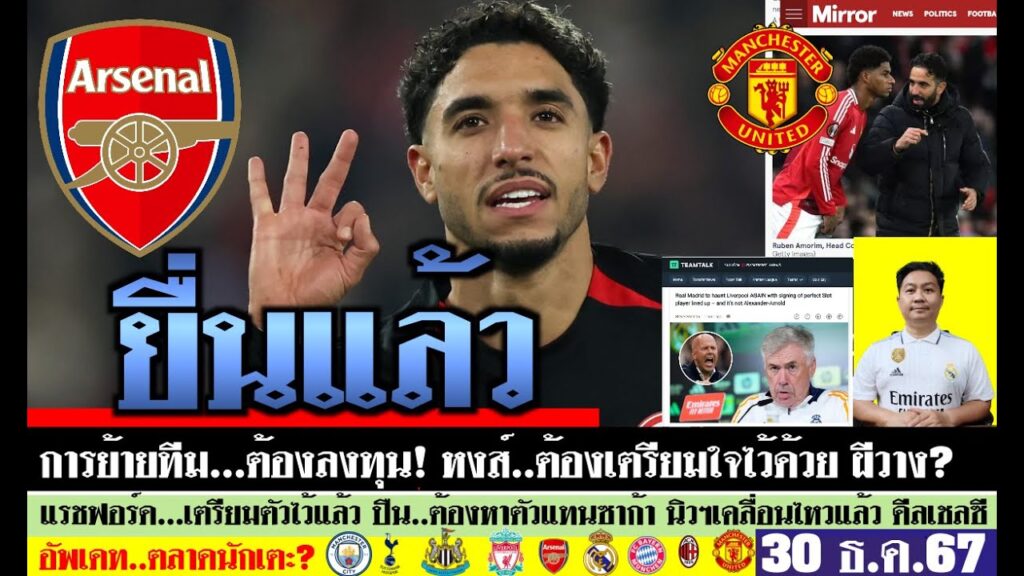 สรุปข่าวการย้ายทีม ล่าสุด 30 ธ.ค. 67 เวลา 22.41 น. – ปืนยื่นมาร์มูซ ราชันยื่นซูบินเมนี ผีเร่งชายแรช