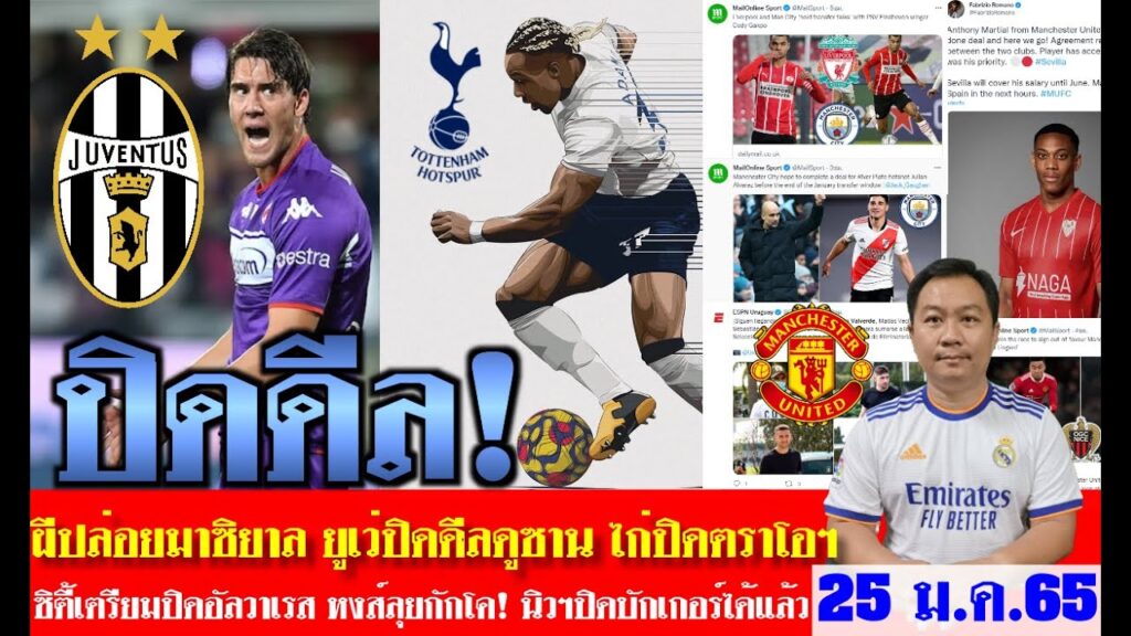 สรุปข่าวการย้ายทีม ล่าสุด 25 ม.ค. 65 เวลา 08.00 น. -ยูเว่ปิดดูซาน ไก่ปิดตราโอเร่ นิวฯปิดบักเกอร์ ผี? ขอขอบคุณ ผู้ติดตามทุกท่าน ที่มาติดตามครับ …