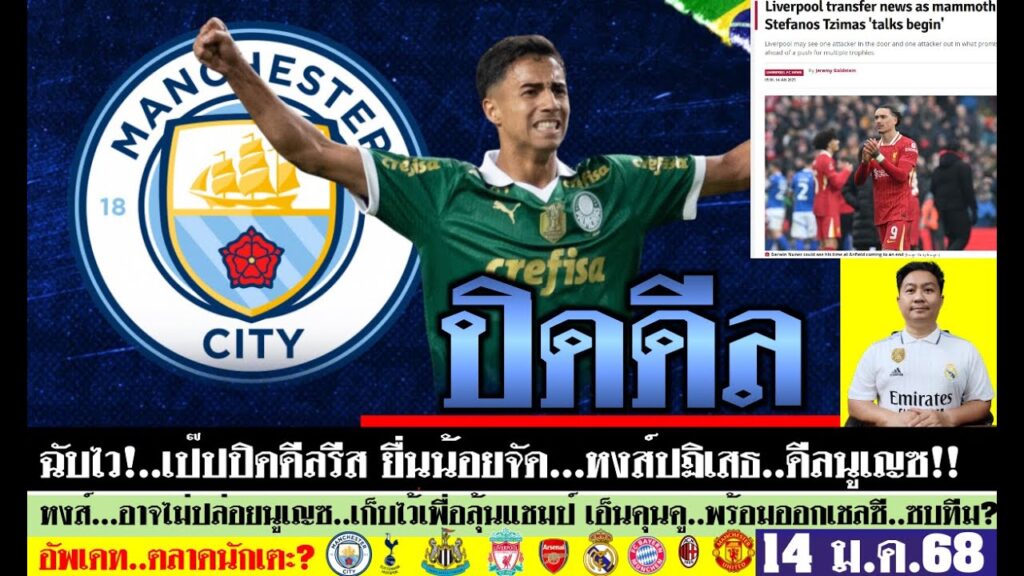 สรุปข่าวการย้ายทีม ล่าสุด 14 ม.ค. 68 เวลา 13.30 น. -ปิดดีลรีส เป๊ปได้คนที่ 3 หงส์ไม่ขายนูเญซราคานี้?