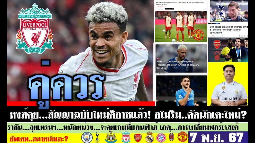 สรุปข่าวการย้ายทีม ล่าสุด 7 พ.ย. 67 เวลา 19.56 น. – หงส์คุยสัญญาใหม่ดิอาซ(เรียบร้อย) อโมริมคัดแข้งผี