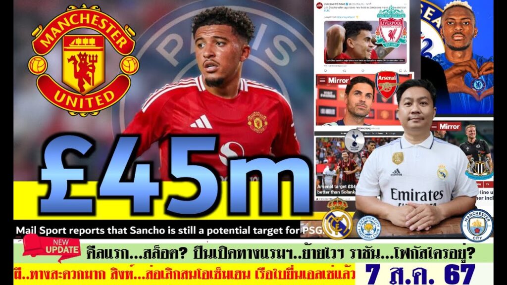 สรุปข่าวการย้ายทีม ล่าสุด 7 ส.ค. 67 เวลา 23.01 น. – ซานโช่ย้ายได้ 45 ล้านปอนด์ สเปอร์สปิดโซเลนเก้