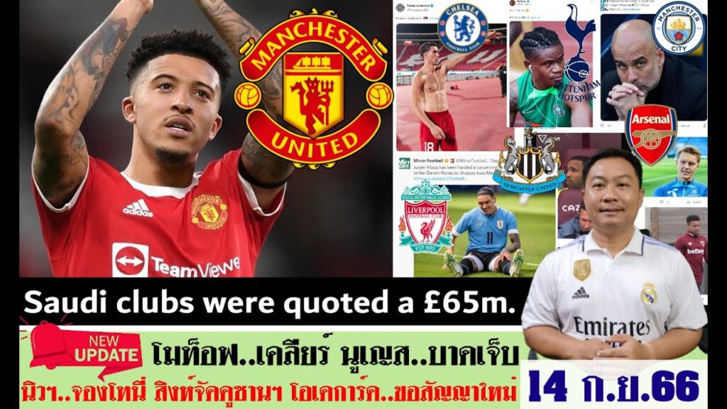 สรุปข่าวการย้ายทีม ล่าสุด 14 ก.ย. 66 เวลา 06.00 น. – ซานโช่ £65m! นูเญซเจ็บ! สิงห์ขอดูซานฯ นิวฯจัด?