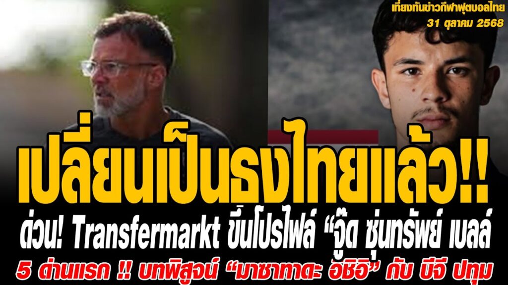 ด่วน! Transfermarkt ขึ้นโปรไฟล์ “จู๊ด ซุ่นทรัพย์ เบลล์” เปลี่ยนเป็นธงไทยแล้ว 5 ด่านแรก !! บทพิสูจน์ “มาซาทาดะ อิชิอิ” กับ บีจี ปทุม “เทพเหม็ด” …