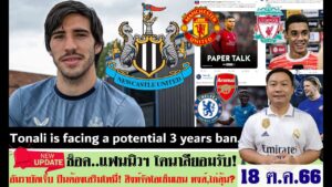 สรุปข่าวการย้ายทีม ล่าสุด 18 ต.ค. 66 เวลา 21.00 น. – ช็อค!..โตนาลียอมรับ ส่อแบน 3 ปี ศึกภายในผี ดีล?