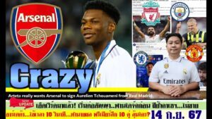 สรุปข่าวการย้ายทีม ล่าสุด 14 ก.ย. 67 เวลา 09.11 น. – อาร์เตต้าดึงซูอาเมนี่ ทำนายผลพรีเมียร์ลีก 10คู่