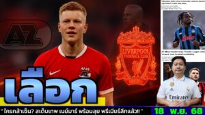 ข่าวการย้ายทีม ล่าสุด 18 พ.ย. 68 เวลา 14.04 น. – 🔥“ค่าตัวพุ่ง! AZ พร้อมขาย Smit เกิน €25M –หงส์รีบ?”