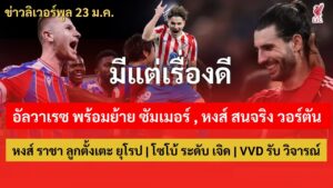 ข่าวลิเวอร์พูล 23/1/2569 อัลวาเรซ พร้อมย้าย ซัมเมอร์ , สนจริง วอร์ตัน | หงส์ ราชา ลูกตั้งเตะ ยุโรป ข่าวลิเวอร์พูล 23/1/2569 อัลวาเรซ พร้อมย้าย ซัมเมอร์ , สนจริง...