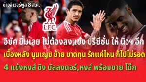 อิซัค ยิ้มเลย ไม่ต้องลงแข่ง ปรีซีซั่น อีก/เบื้องหลัง นูนเญซ ย้าย ขาดทุน หงส์รัก แค่ไหน ก็ไปไม่รอด อิซัค ยิ้มเลย ไม่ต้องลงแข่ง ปรีซีซั่น อีก/นูนเญซ ย้ายทีม ขาดทุน หงส์รัก แค่ไหน...