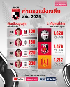 สิ้นเดือนแล้ว คุณได้ค่าเหนื่อยกันเท่าไร❓️ 💰 soccer-money.net เว็บไซต์ที่นำเสนอเกี่ยวกับตัวเลขทางการเงินของวงการฟุตบอลญี่ปุ่น ออกมาเปิดเผยค่าเหนื่อยของนักเตะเจลีก ทั้งหมด 618 ราย ซึ่งนักเตะที่ได้รับเงินเดือนสูงสุดในฤดูกาล 2025 คือ ‘ยูยะ โอซาโกะ’ กองหน้า ‘วิสเซล โกเบ’ ที่รับเงินเดือนปีละ 330 ล้านเยน...