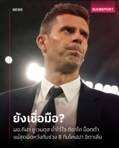 🤔ตกรอบโคปปา อิตาเลีย ไม่แรงพอสั่นขาเก้าอี้ "ม็อตต้า"? คริสเตียโน จุนโตลี ผู้อำนวยการกีฬา ยูเวนตุส ยืนยันว่า ไม่มีแผนปลด ติอาโก ม็อตต้า ออกจากตำแหน่งเฮดโค้ช ถึงแม้ทีมพ่ายดวลจุดโทษต่อ เอ็มโปลี ตกรอบก่อนรองชนะเลิศ โคปปา อิตาเลีย เมื่อวันพุธที่ 26...